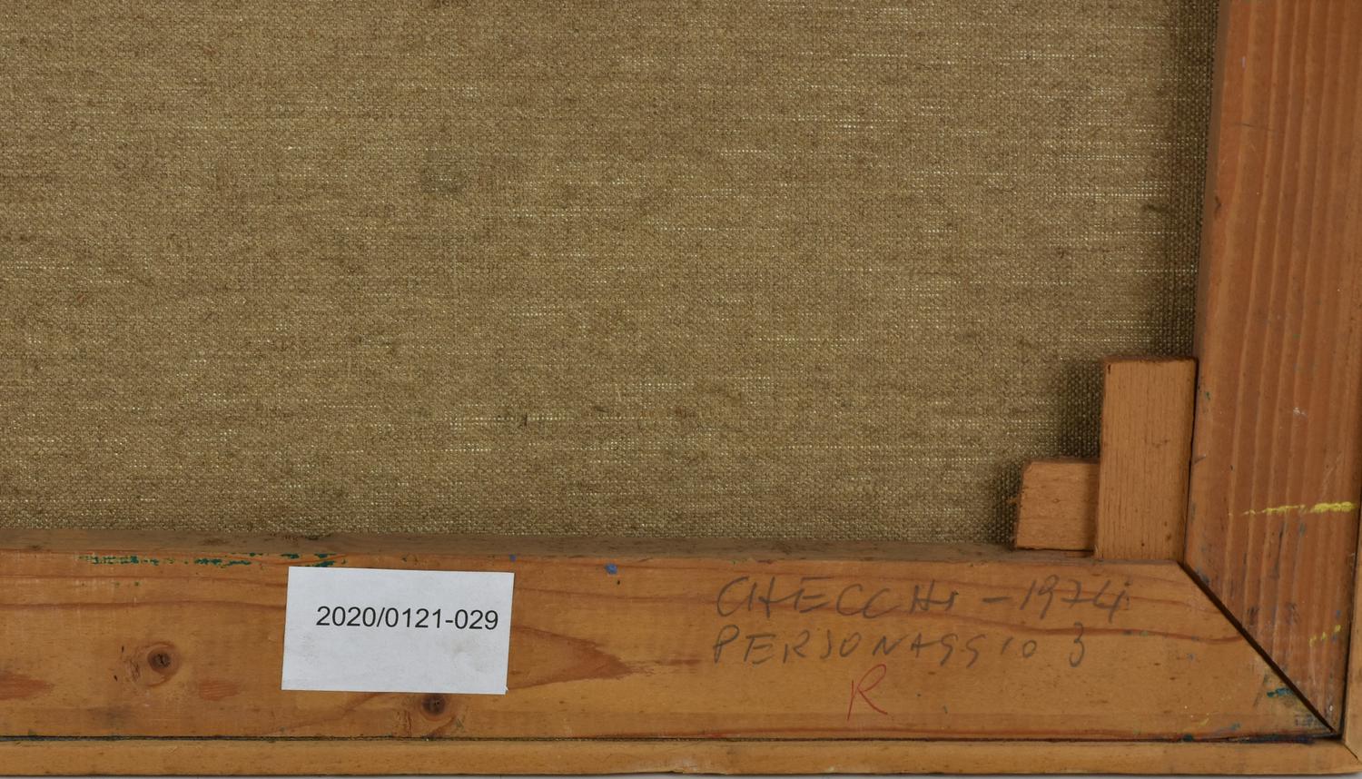 Giovanni Checchi PERSONAGGIO 3 olio su tela, cm 100x50,5 sul telaio: titolo e...