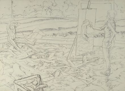 James McGarrell (Indianapolis, Indiana, 1930) Il pittore, 1976 Matita su carta, cm. 48,5x66,5 Firma e data in basso al centro.