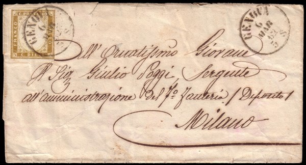 SARDEGNA/REGNO D'ITALIA 1862 (6 mar.) Lettera in tariffa militari, da Genova pe