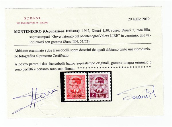 MONTENEGRO Occupazione italiana 1942 Serie completa di 11 valori soprastampati