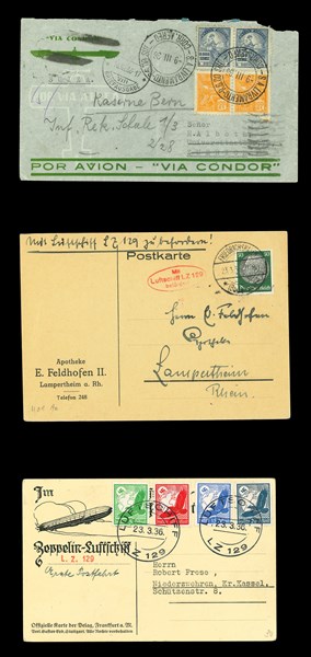 Collection of 90 covers and postcards travelled with aircraft Zeppelin LZ 127 and LZ 129 "Hindenburg". To be inspected