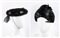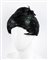 Lotto di due cappelli: paglietta nera fine anni 40, tulle e fiori in stoffa, turbante anni 60, piume verde scuro.