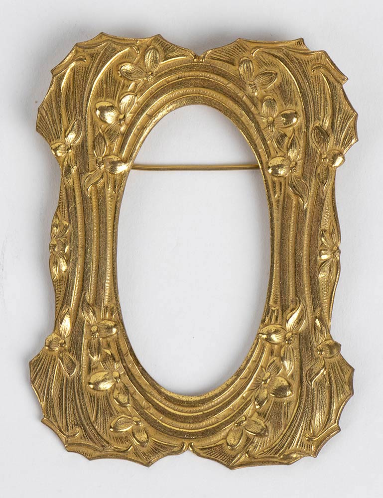 Grande spilla in metallo dorato a forma di cornice