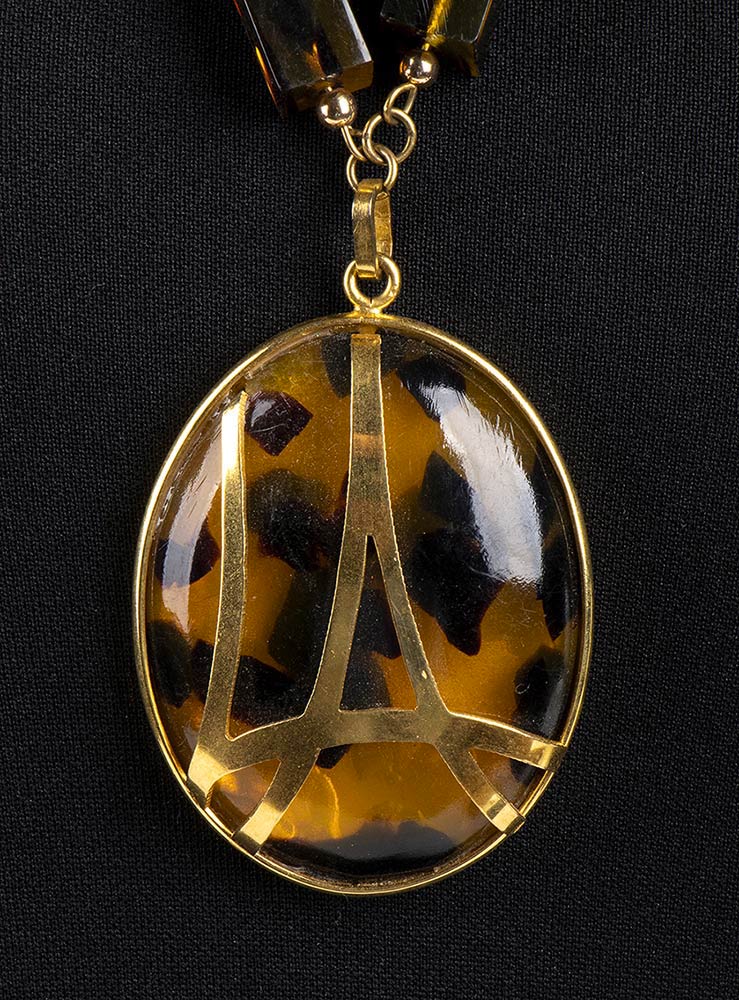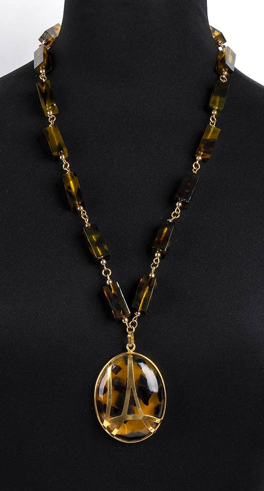 Collana metallo dorato e resina imitazione tartaruga.
