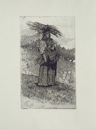 Giovanni Fattori (Livorno, 1825 - Firenze, 1908) Boscaiola mm. 359x217 (lastra) mm.. 510X380 (foglio) Bibliografia A. Baboni- A. Malesci, Giovanni Fattori L'Opera incisa, due voll, Edizioni Over, Milano 1983, tav CLXII pag. 551