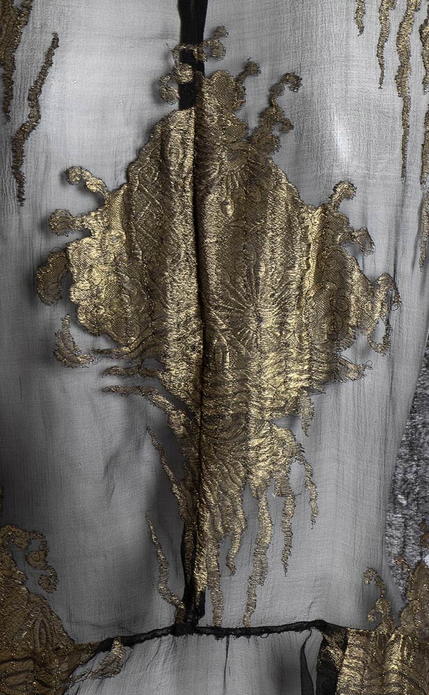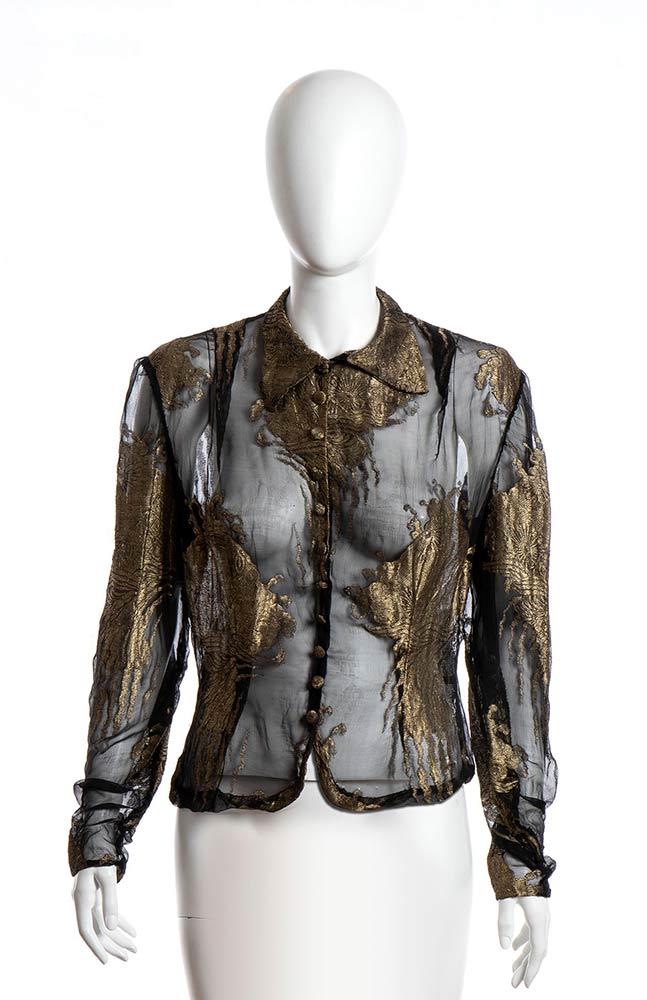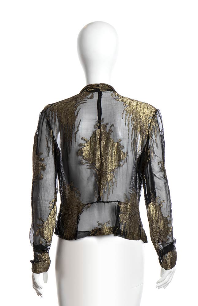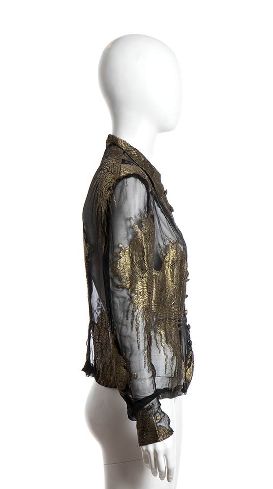 Camicia in lamè lavorazione appliqué su chiffon nero.