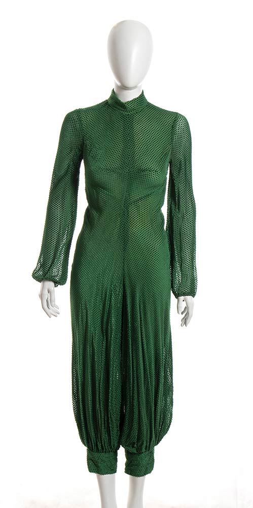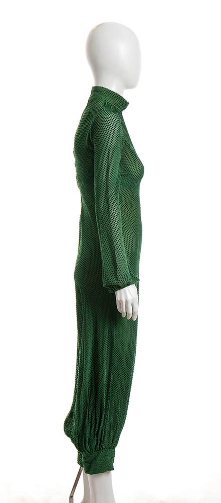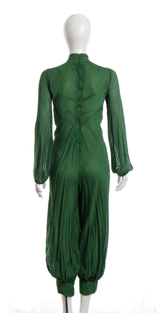 Tuta in ciniglia verde operata, Busto 90 cm , Vita 70 cm.