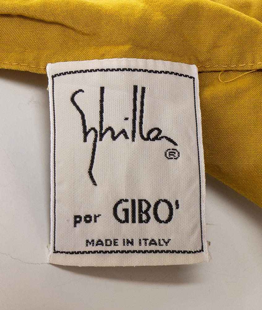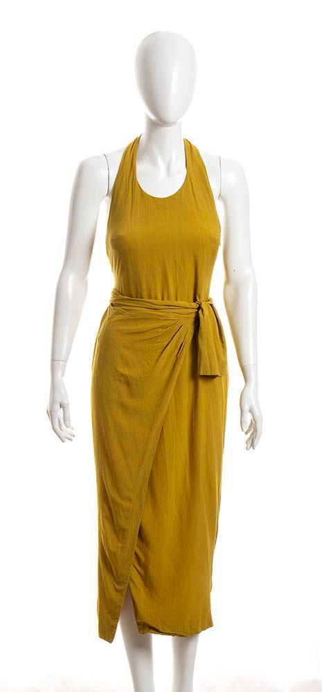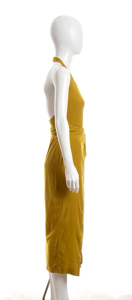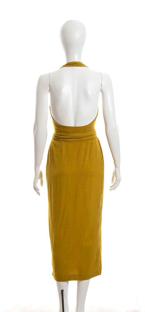 Abito in jersey di cotone giallo ocra, pannello con fusciacca Busto 90 cm.
