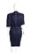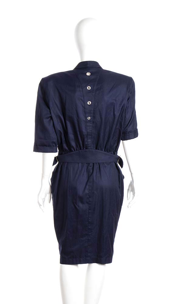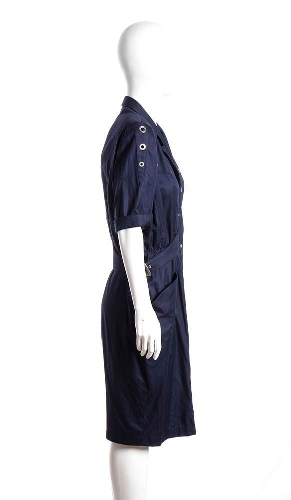 Abito in cotone blu scuro, borchie decorative, cintura, Busto 95 cm, Vita 75 cm