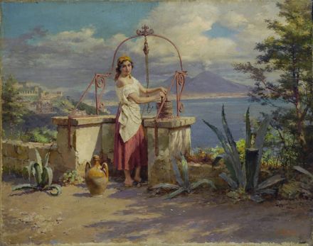 Lot 315 | Fortunino Matania (Napoli, 1881 - Londra, 1963) Donna al pozzo Olio su tela,...