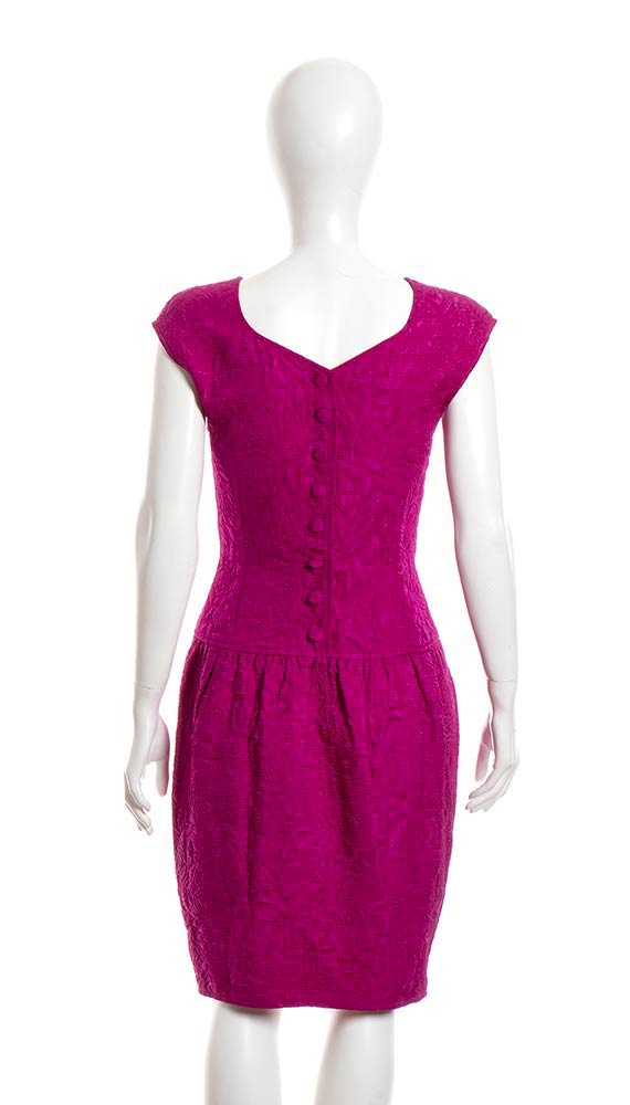 Abito in tessuto misto seta/poliestere lavorazione matelassé.