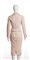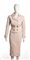 Completo (giacca e gonna longuette) in cotone piquet rosa chiaro, bottoni in metallo dorato e strass