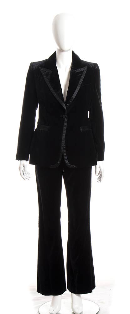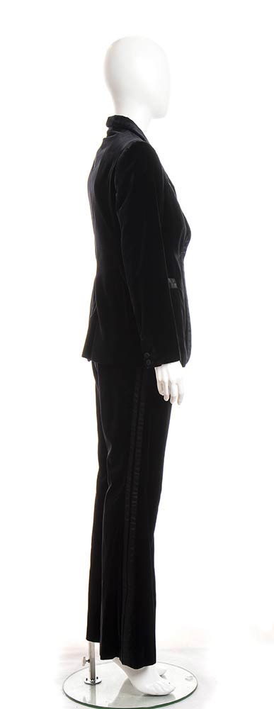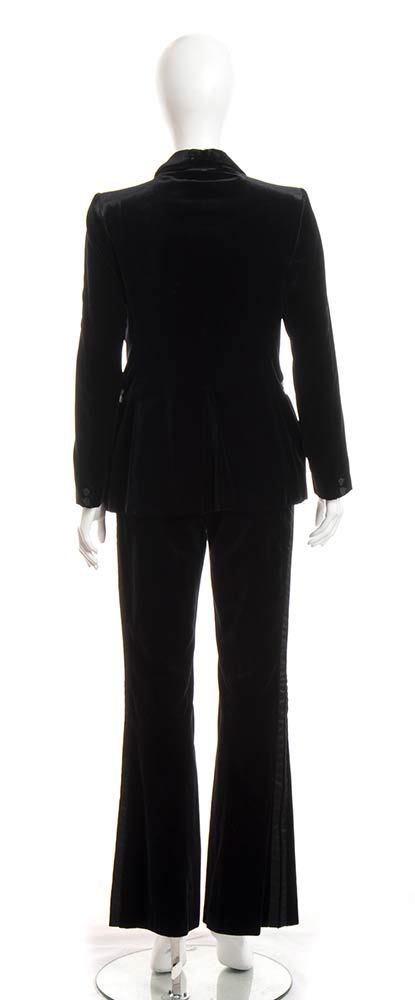 Completo(giacca e pantalone) modello smocking in velluto nero.