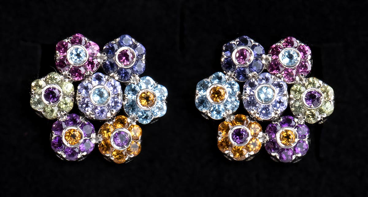 Bellissima combinazione di catenina con pendente e orecchini in oro 18 kt firmati Paquale Bruni con gemme multicolore peso 37,41 gr