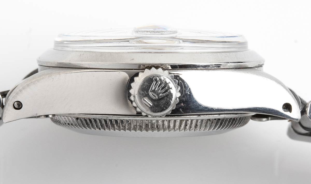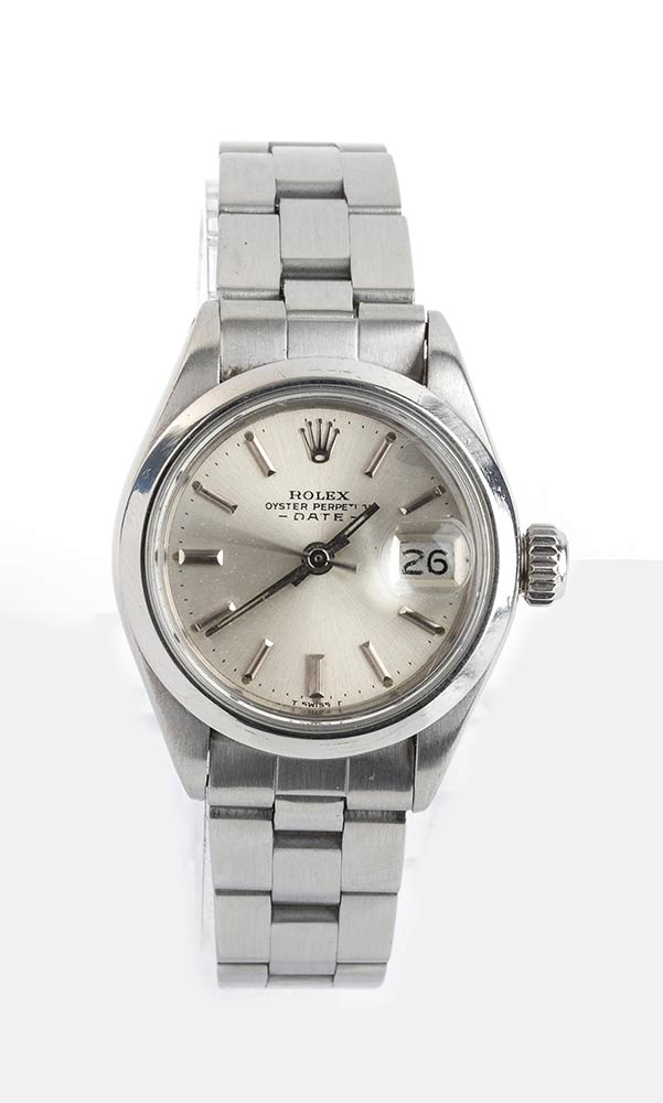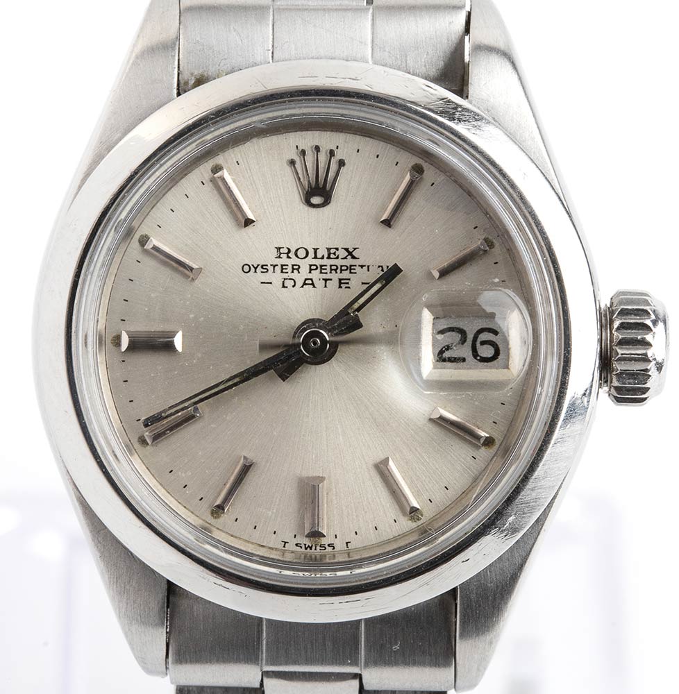 Orologio Rolex Oyster Date Lady, 26mm in acciaio, vetro Plexiglass anni 70, quadrante bianco/argentè, scritta perpetual non perfetta. Bracciale oyster . Meccanica revisionata, garantito mesi 12, con certificazione di originalità.