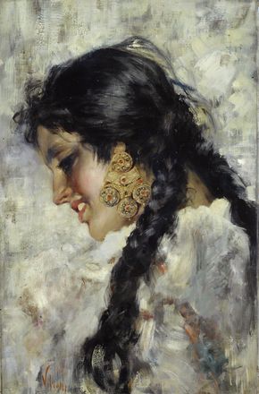 Vincenzo Irolli (Napoli, 1860 - 1949) Zingara Olio su tela, cm. 62x40 Firma in basso a sinistra.