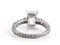 Importante anello solitario in oro bianco 18 Kt, montatura con contorno a pavè di diamanti taglio Brillante, circa 2 carati, e Diamante centrale Taglio smeraldo di 2,41 carati, colre J purezza Vs1. Corredato di certificato IGI Roma.
