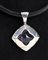 BVLGARI collezione piramide, pendente in oro bianco e amestista, con laccio in cuoio e chiusura originale bulgari in acciaio.