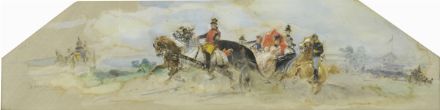 Sebastiano De Albertis (Milano, 1828 - 1897) Ritorno dalle corse, 1887 Acquarello su seta, cm. 14x51 Firma e data in basso a sinistra. Sul verso: etichetta Galleria Bolzani, Milano