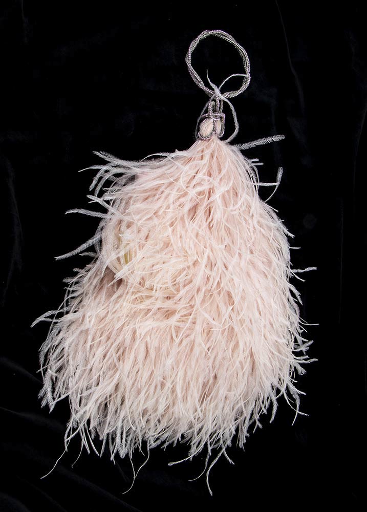 Esterno: piume di struzzo - Lunghezza 36 cm Interno: seta - Lunghezza 24 cm; larghezza 20 cm.