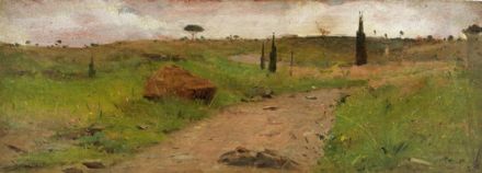 Lot 326BIS | Maestro toscano del XIX sec. Paesaggio Olio su tavola, cm. 9x24,5 Sul verso:...