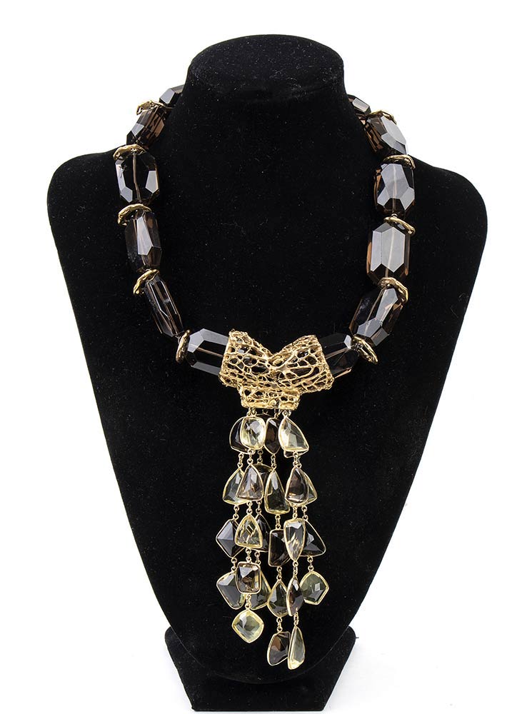 COLLANA IN TOPAZI FUMÉ CON PENDENTE A CASCATA DI CITRINI LEMON E TOPAZI FUMÉ