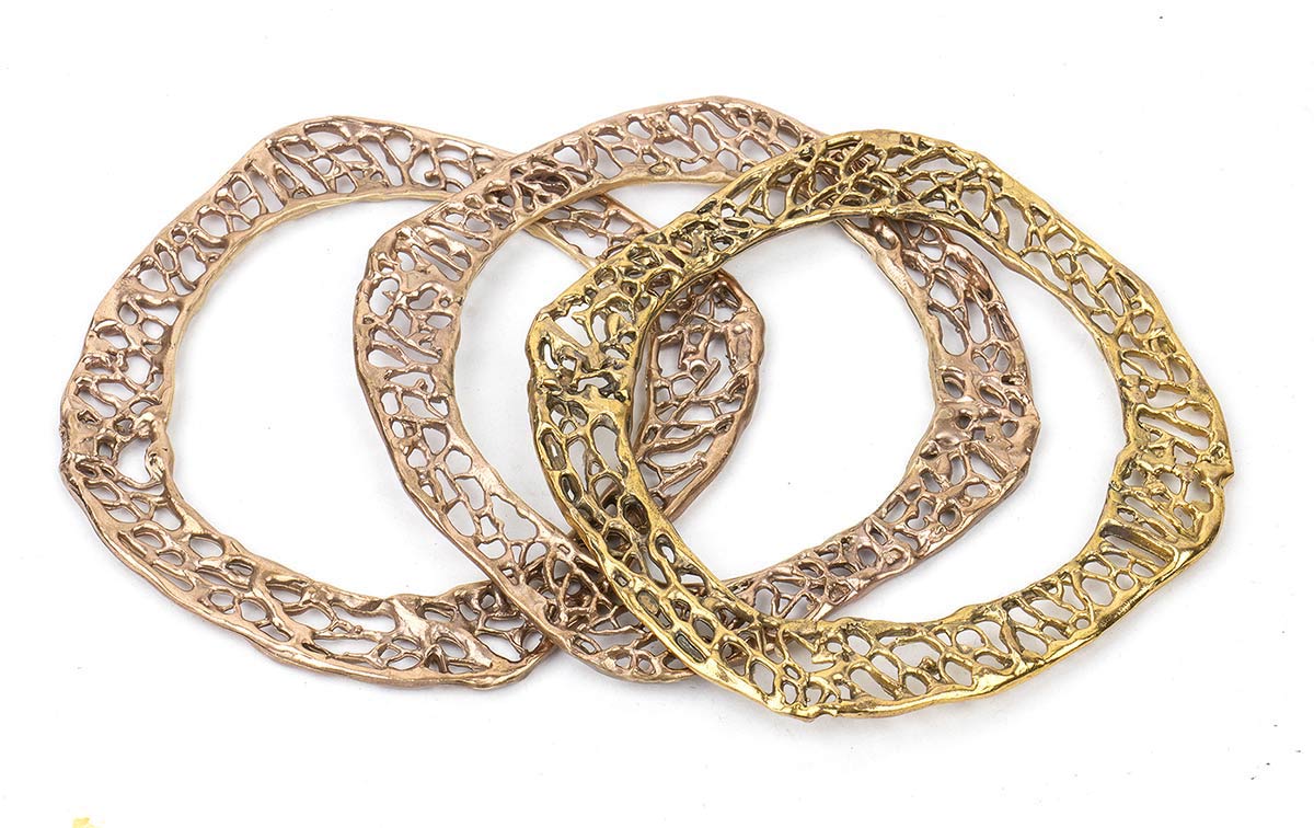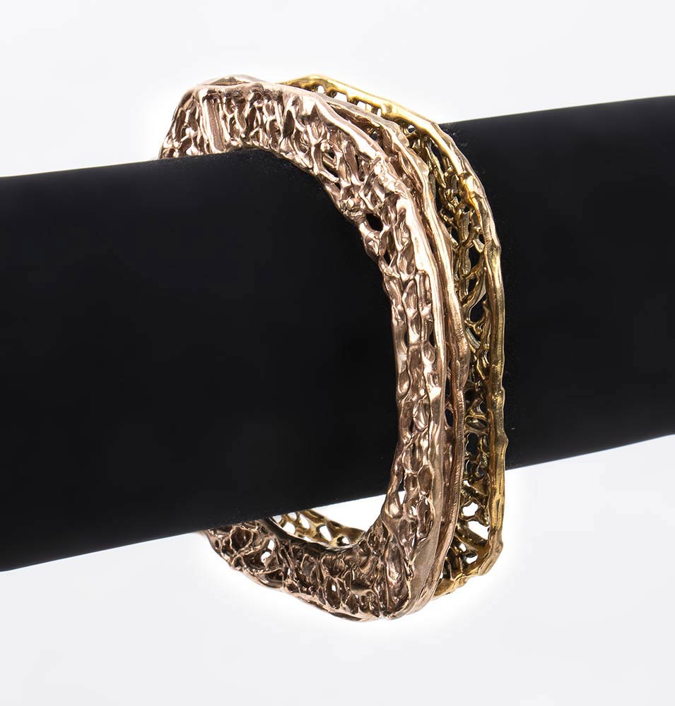 Lot 295 | TRE BRACCIALI IN BRONZO CON BAGNO IN ORO 18 KT GIALLO E ROSA