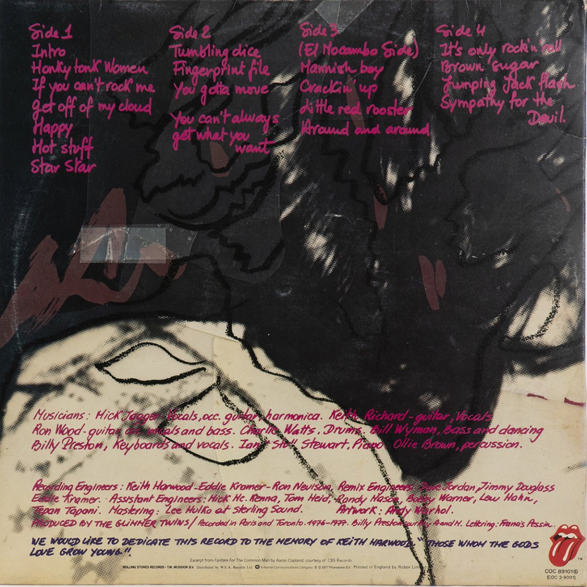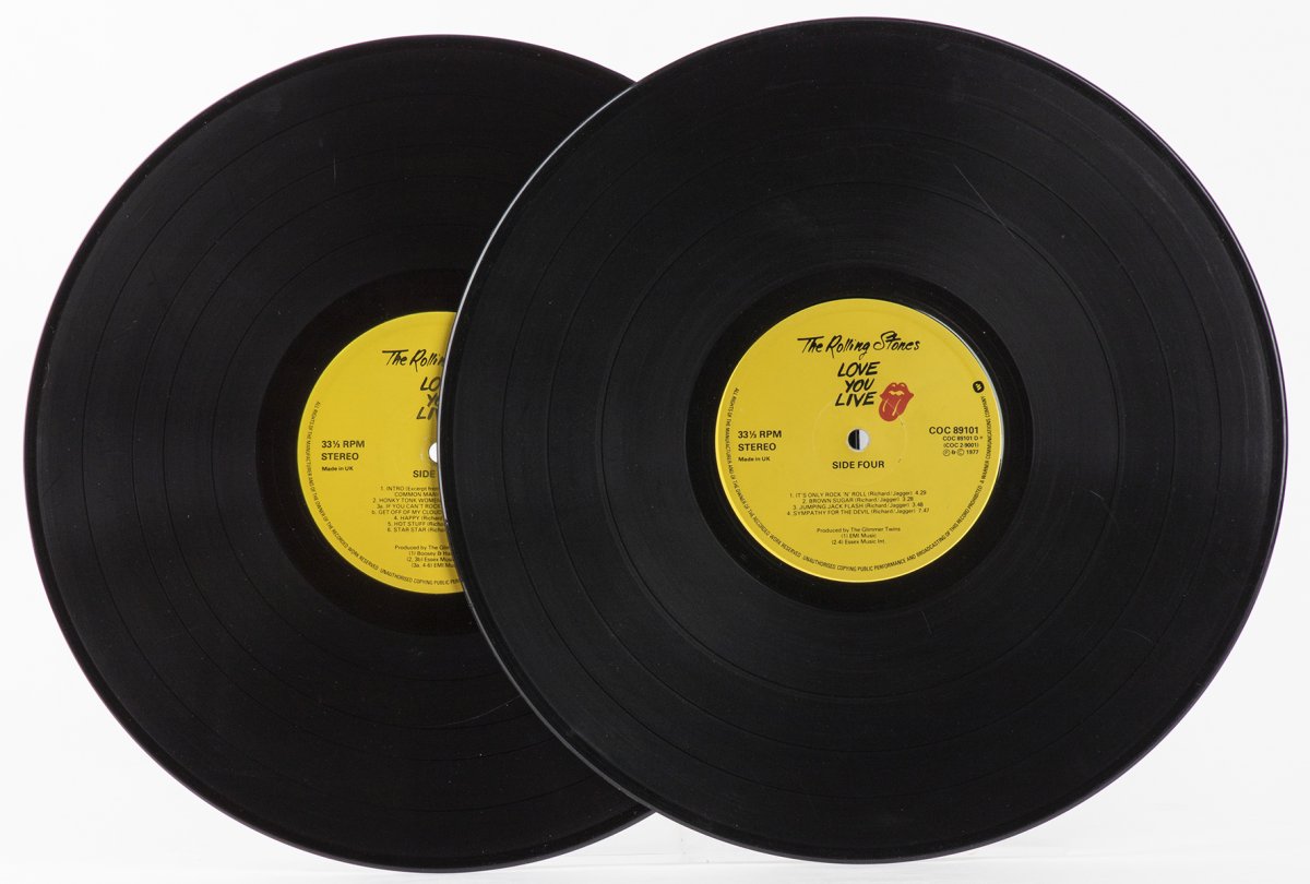 Rolling Stones, "Love you live" doppio LP 33 giri, 1977, con prima e terza di copertina autografate a pennarello nero da Andy Warhol. COC 89101