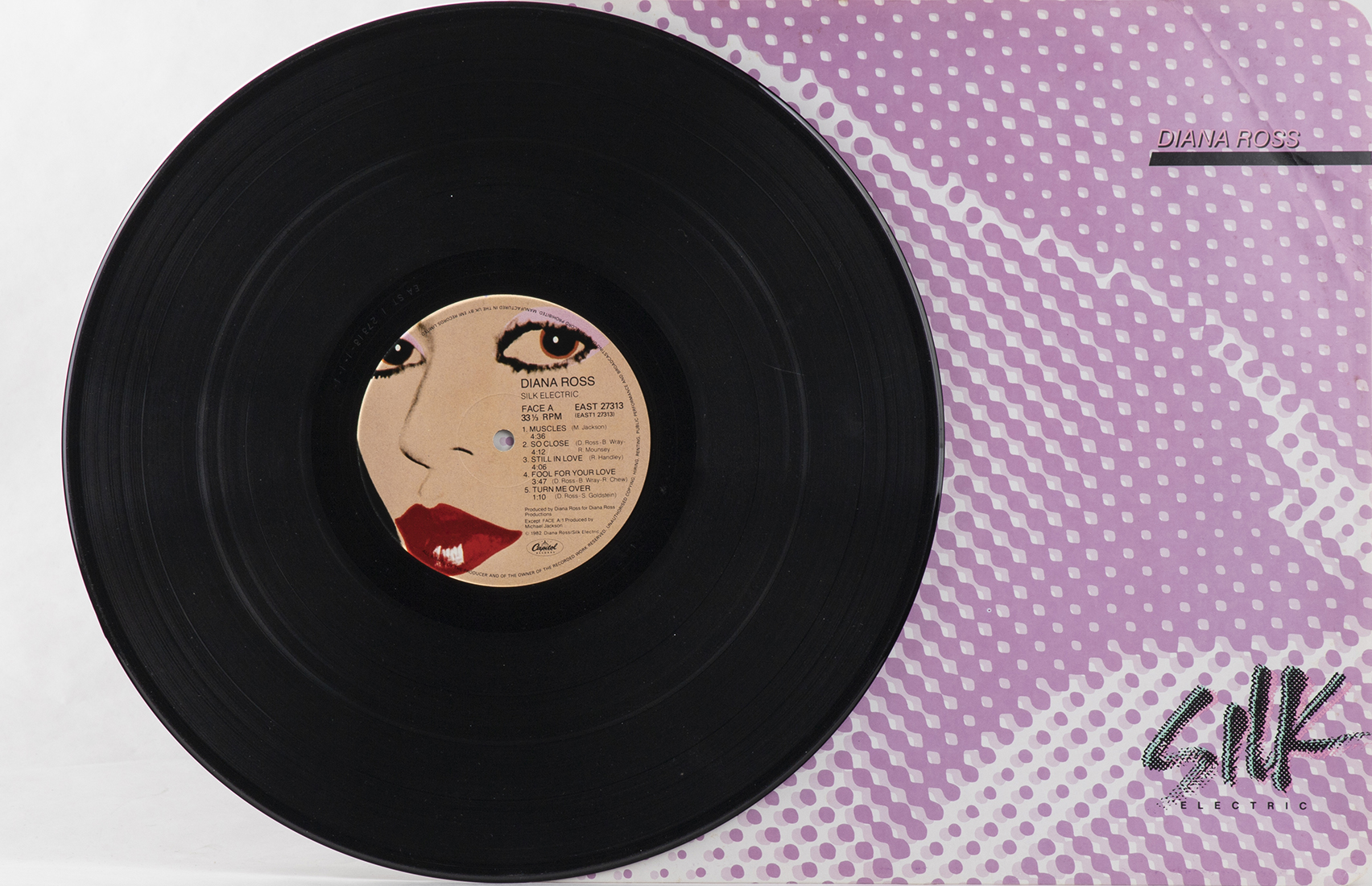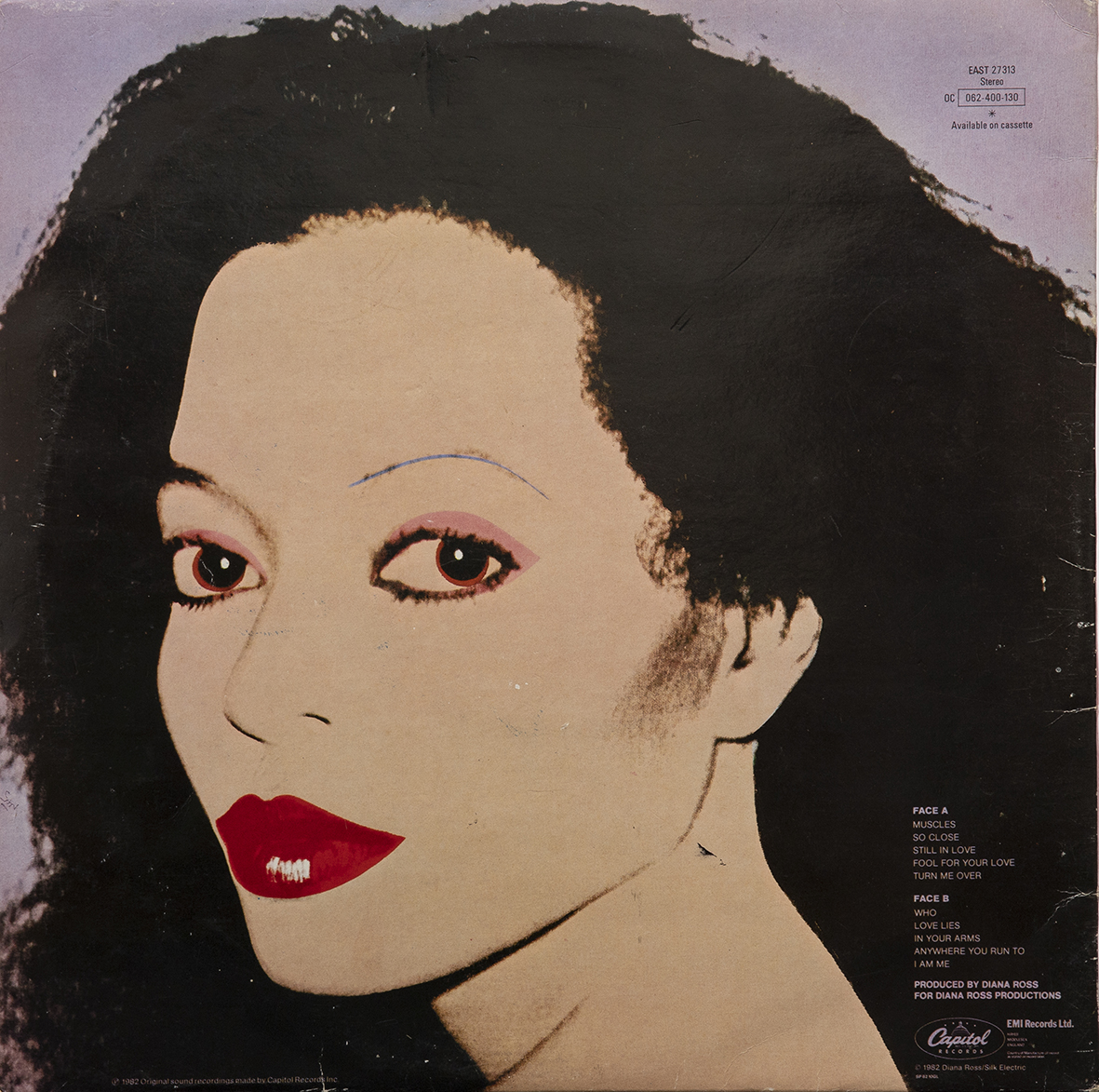 Diana Ross, "Silk Electric" LP 33 giri, 1982, con copertina autografata a pennarello nero da Andy Warhol. EAST 27313