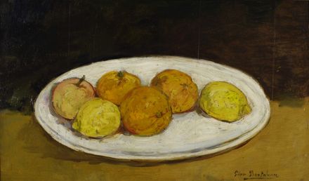 Giovanni Bartolena (Livorno, 1866 - 1942) Aranci e limoni Olio su tavola, cm. 37x62 Firma in basso a destra. Sul verso: etichetta e timbri Parronchi dipinti 800-900, Firenze. Bibliografia: J. Pelagatti, Giovanni Bartolena, Centro Editoriale Arte e Turismo, Firenze, 1970, Tav. XII.