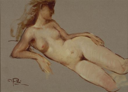 Cafiero Filippelli (Livorno, 1889 - 1973) Nudo Olio su carta riportata su tela, cm. 24x34,5 Firma in basso a sinistra.