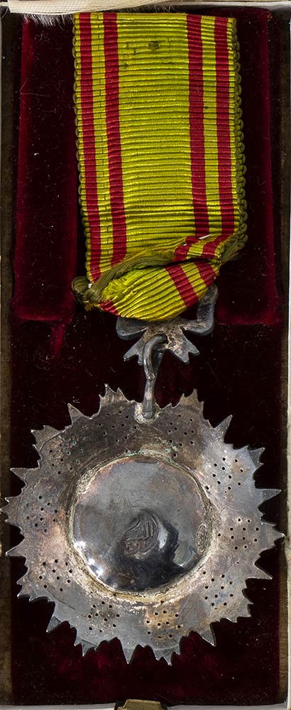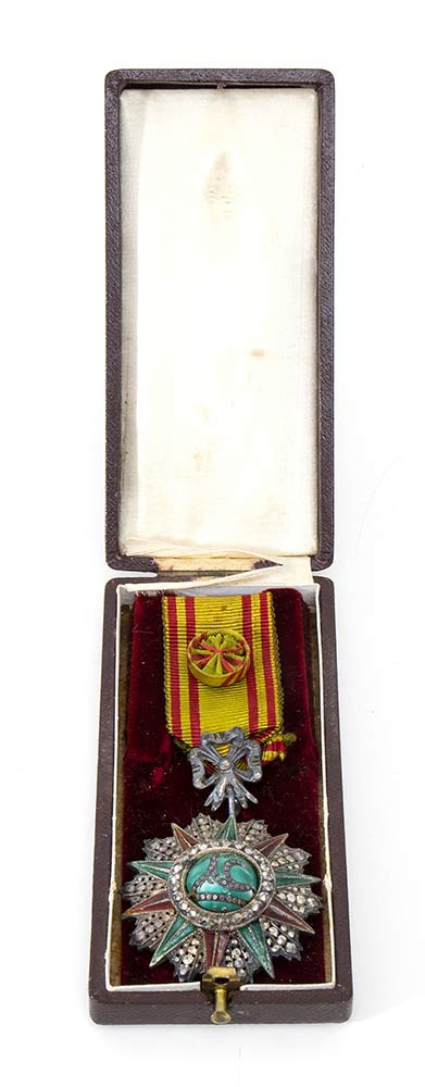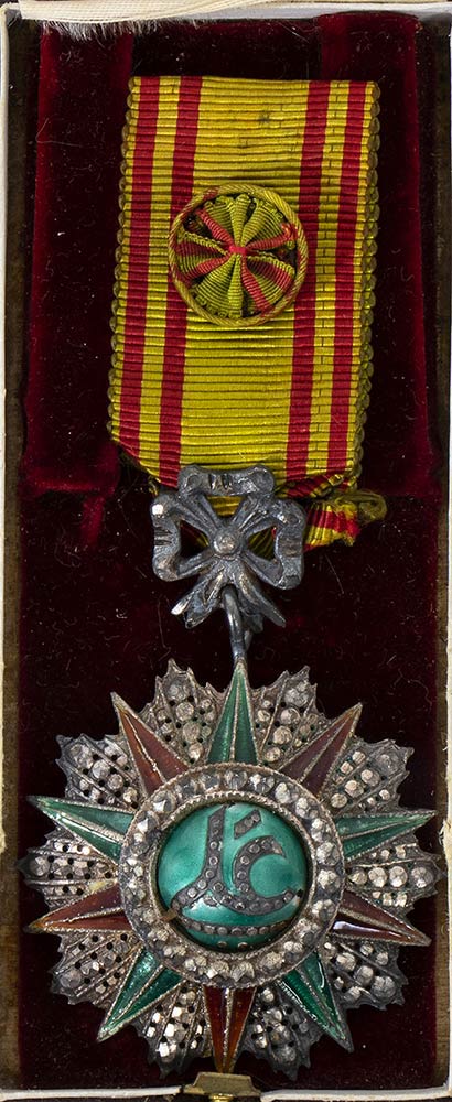 Insegna di quarta classe dell'Ordine di Nichan al Iftichar, di ottima fattura europea del periodo di Ali Bey, 1890 circa, in astuccio ottimo stato