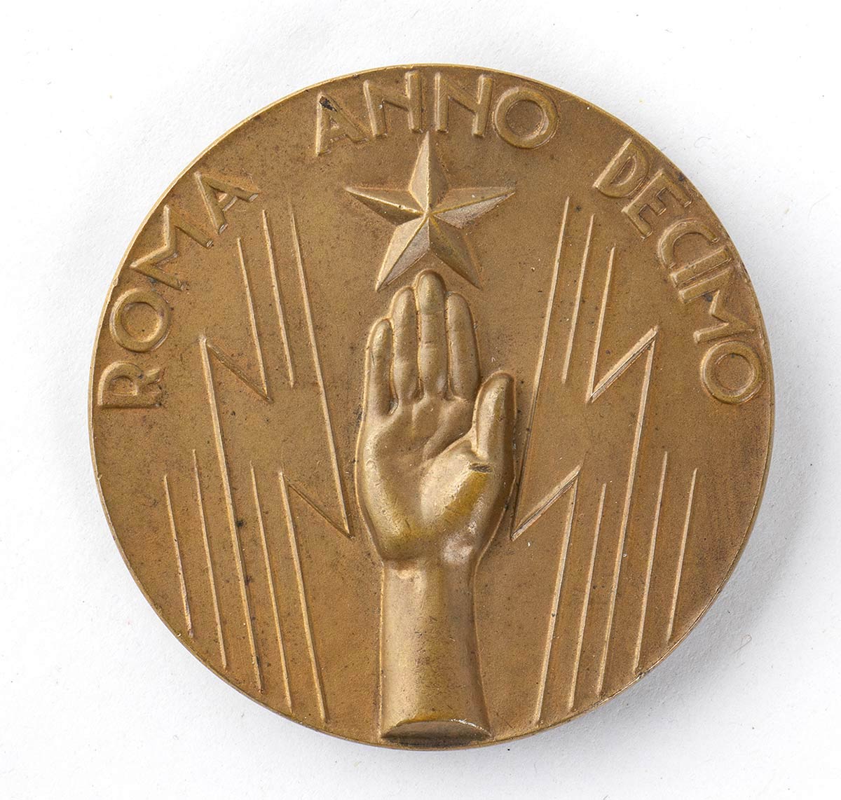 Bella medaglia di Ernesto Tayhat per la prima adunata di professionisti ed artisti, Roma anno decimo.