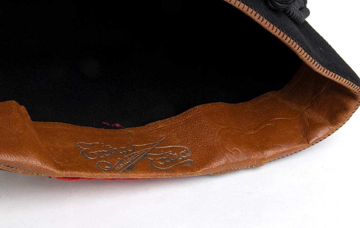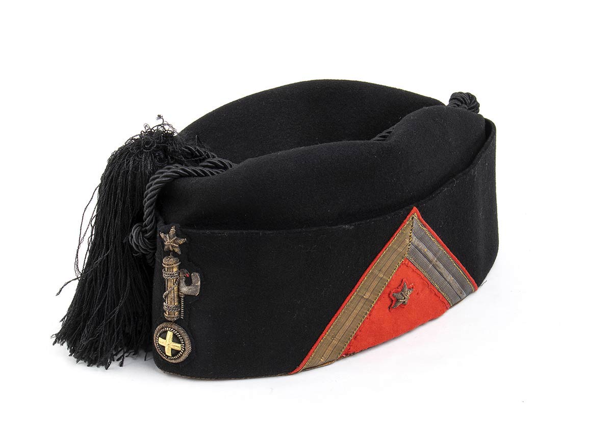 Grado a lastra a sottopannato di rosso con una stella, cordone in seta nera fodera in seta con marchi del fabbricante