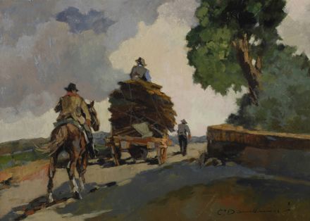 Lot 342 | Carlo Domenici (Livorno, 1898 - 1981) Il carro della legna Olio su tavola,...