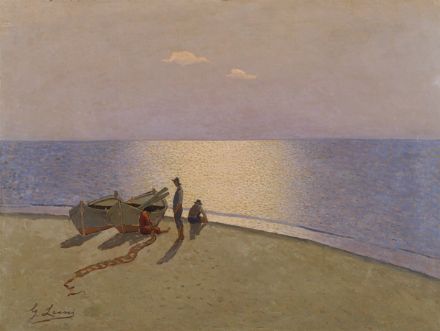 Giovanni Lomi (Livorno, 1889 - 1969) Pomeriggio a Tirrenia Olio su faesite, cm 59,5x79,5 Firma in basso a sinistra; firma e titolo sul verso.