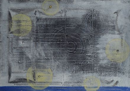 Roberto Floreani (Venezia, 1956) Concentrico La scrittura del Dio, 2004 Tecnica mista su tela, cm. 66x46 Sul verso: firma, data e titolo.