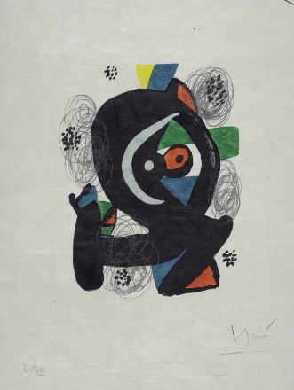 Joan Mirò (Montroig, 1893 - Palma di Mallorca, 1983) La Melodie Acide, 1980 Litografia a colori su carta Japon, mm. 340x255; es. V/VII Firma in basso a destra e tiratura in basso a sinistra Bibliografia: Mirò Lithographe VI 1976-198, Maeght Editore Parigi 1992, n° 1217 pag. 143