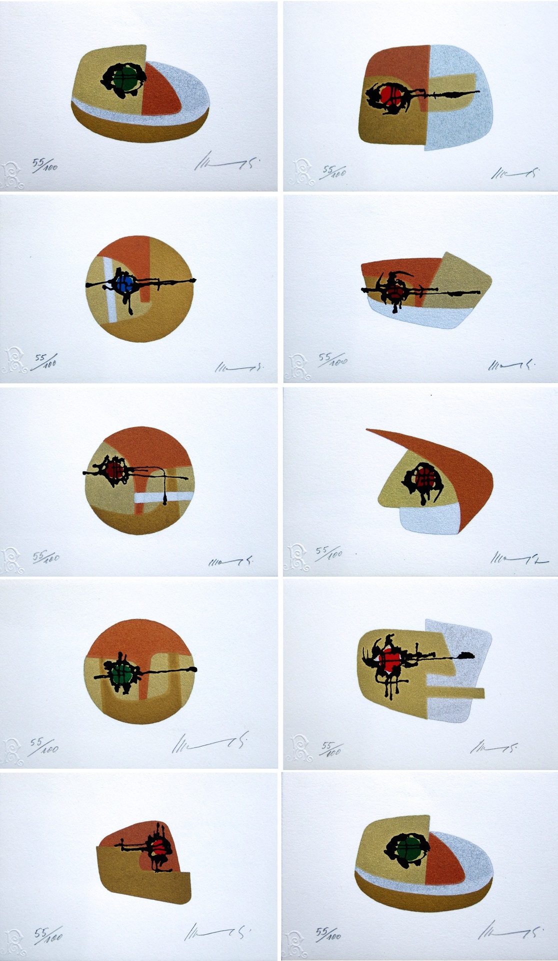 es. 55/100, cartella contenente 10 serigrafie ritoccate a mano e firmate dall'artista contenute in box in legno, edizione Alberto Ribichini di Castelplanio