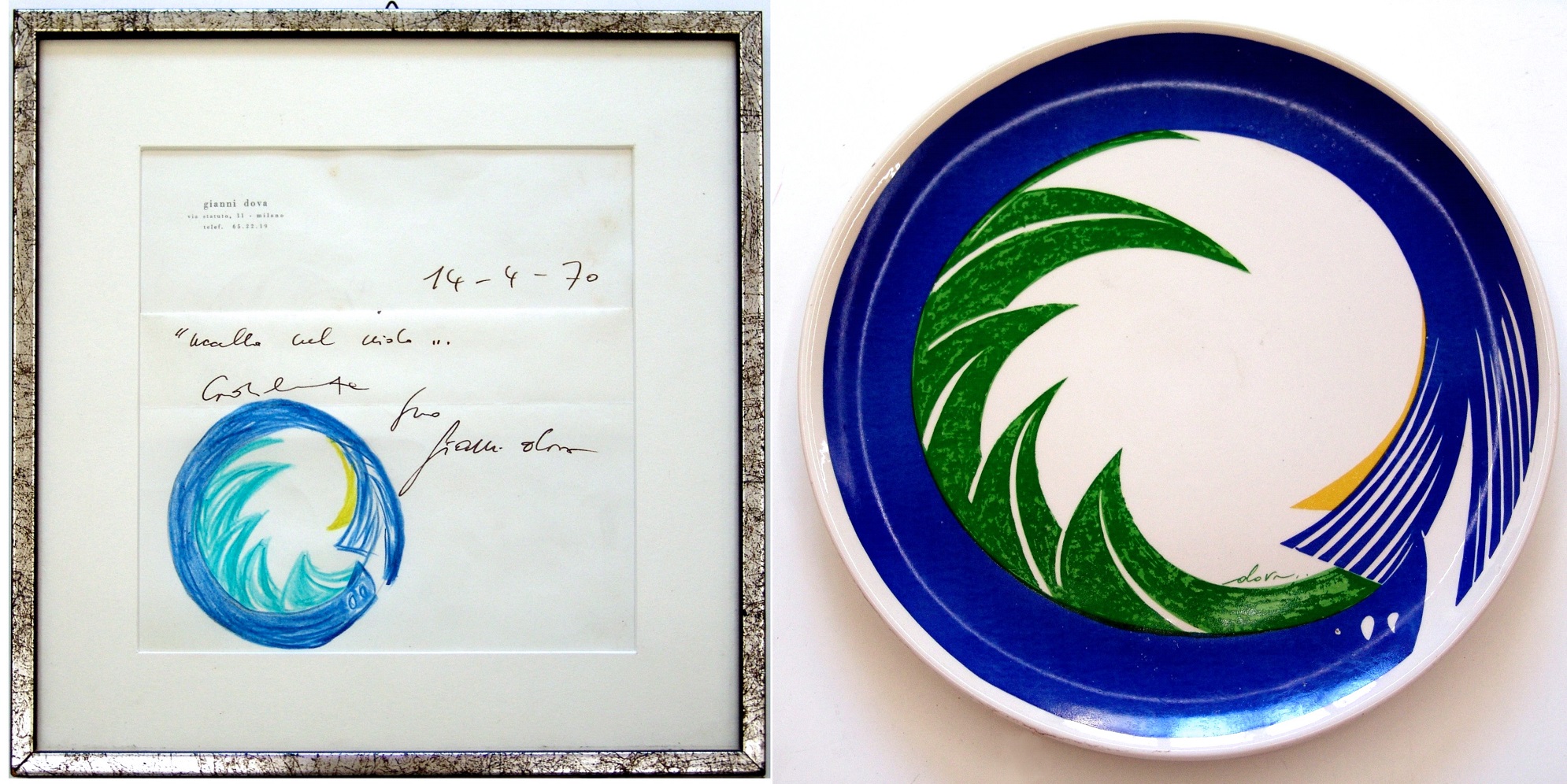 piatto in ceramica e lettera con disegno, diametro 30 cm