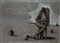 Sergio Vacchi (Castenaso, 1925) Bagnante con cane, 1969 Tecnica mista su carta riportata su tela, cm. 50x70 Firma e data in basso a destra. Autentica dell'autore su foto.