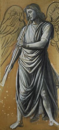 Achille Funi (Ferrara, 1890 - Appiano Gentile, 1972) Angelo musicante, 1963 Grafite, biacca e tempera su cartone riportato su tela, cm. 215x99 Firma e data in alto a sinistra.