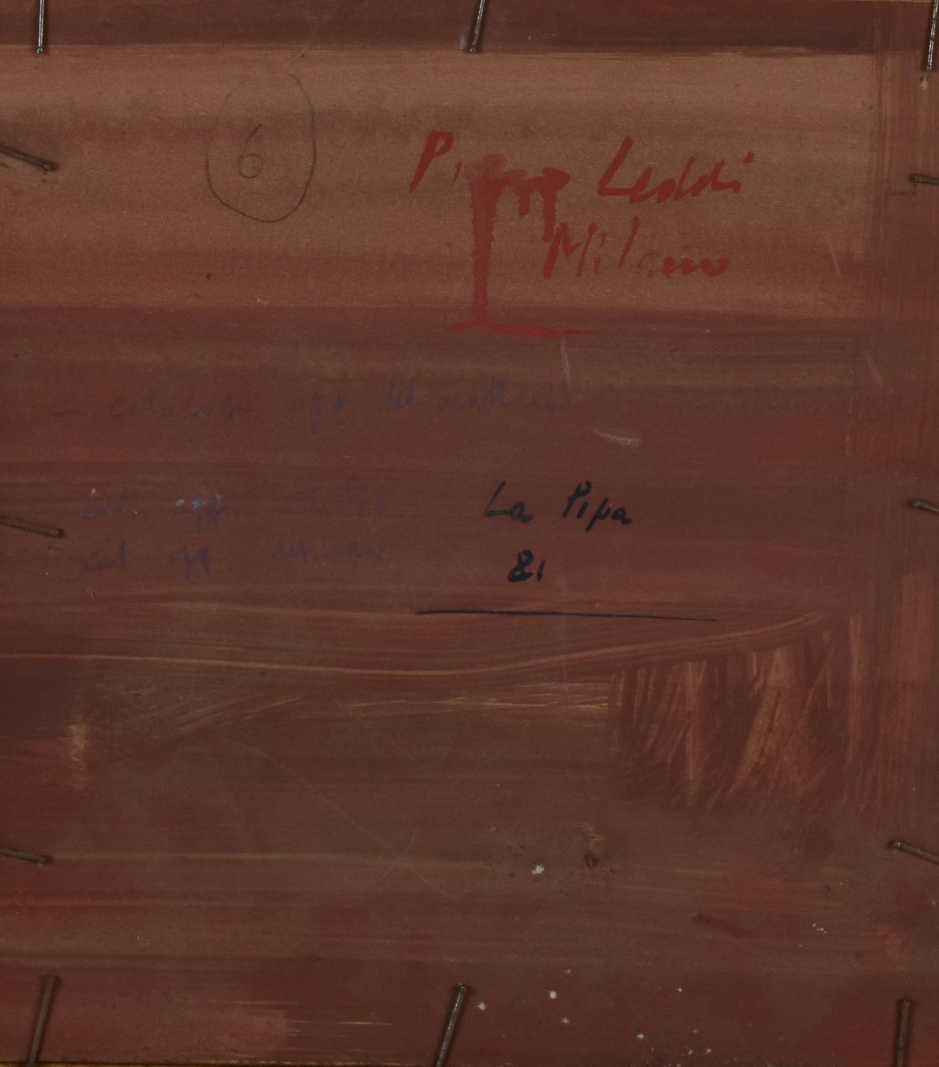 Piero Leddi LA PIPA tecnica mista su cartone, cm 27,5x25 firma sul retro:...