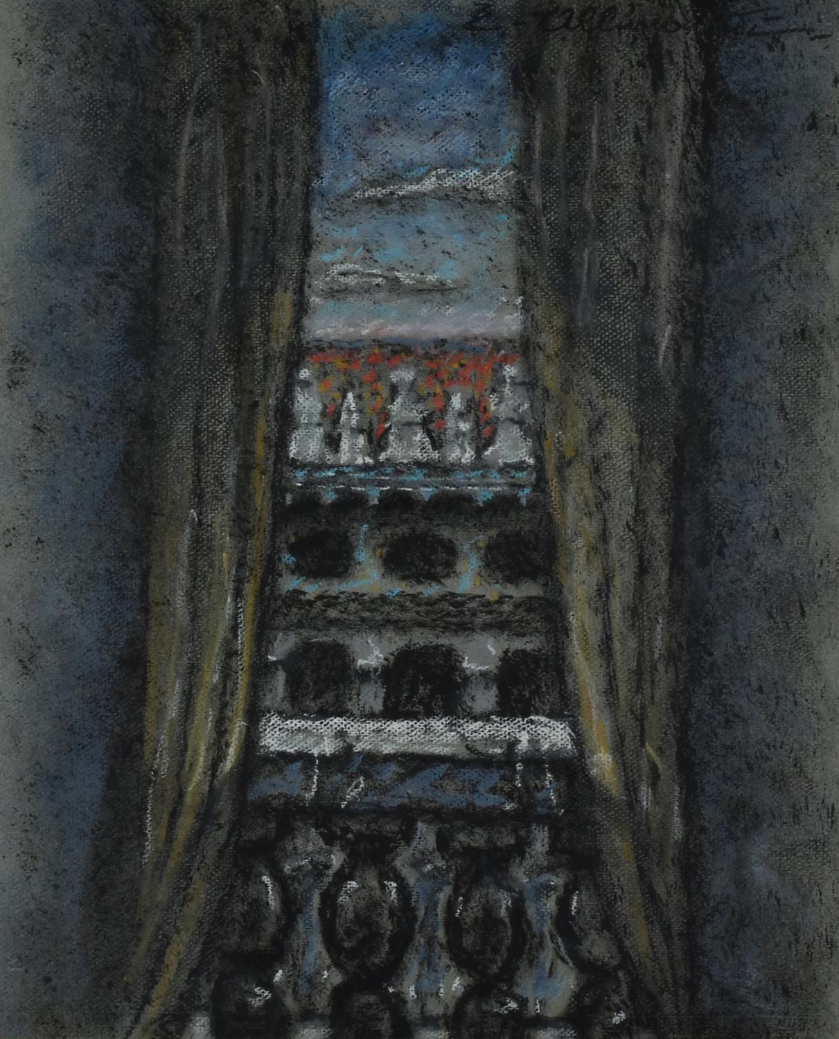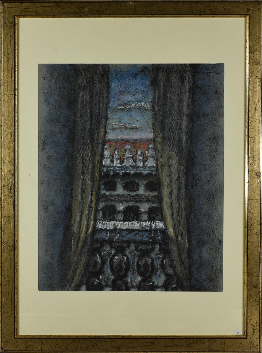 Enrico Allimandi FINESTRA SULLA CITTA' tecnica mista su carta, cm 50x40 firma...