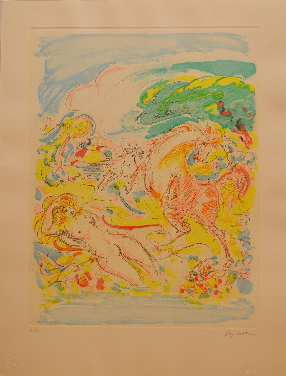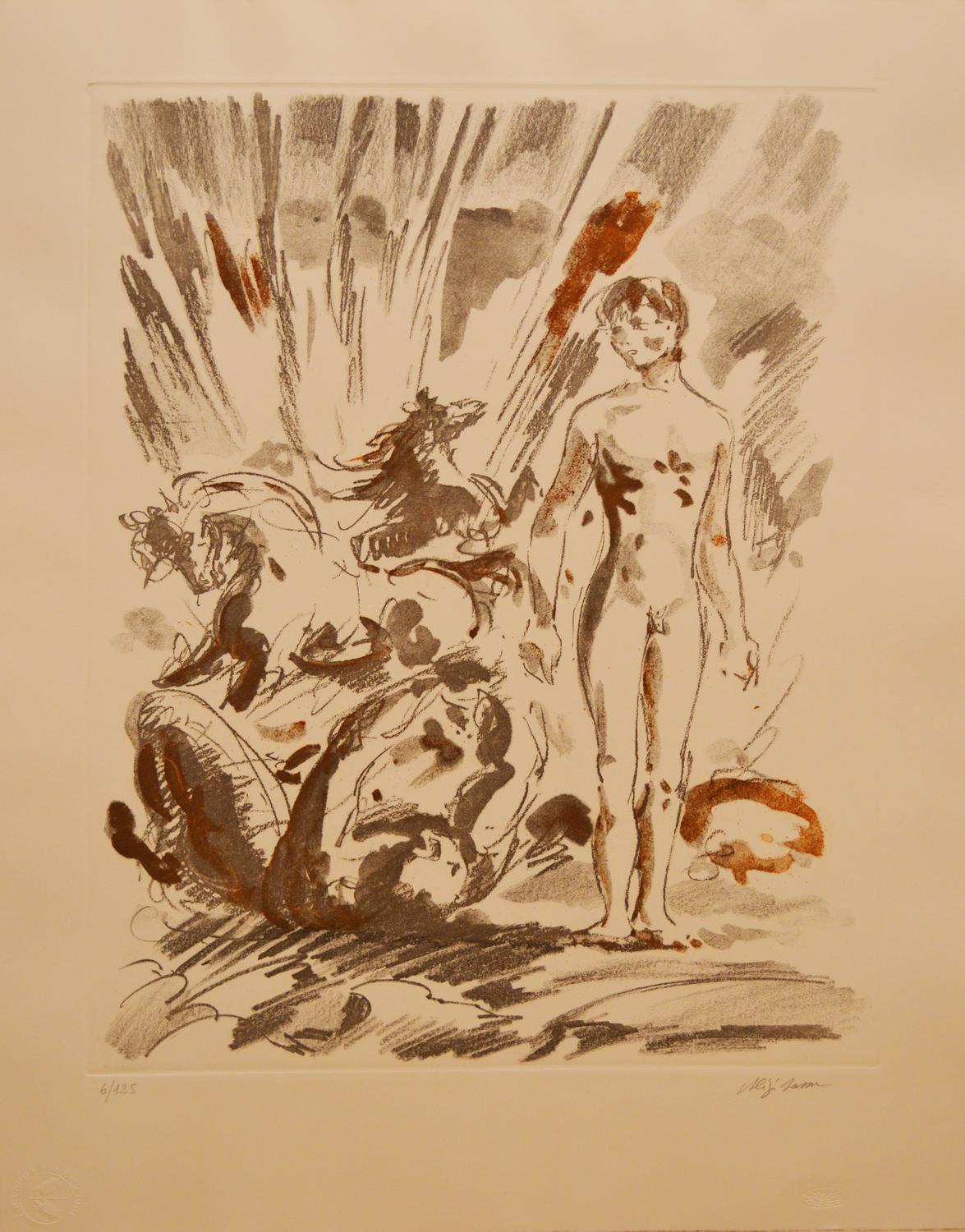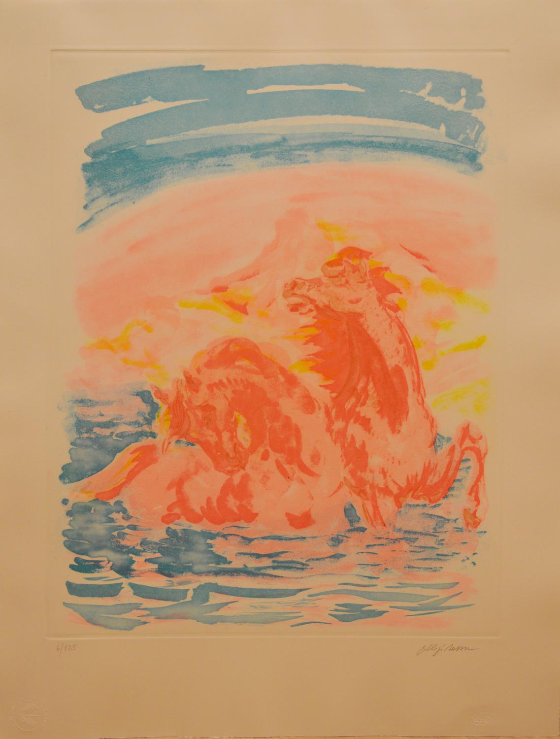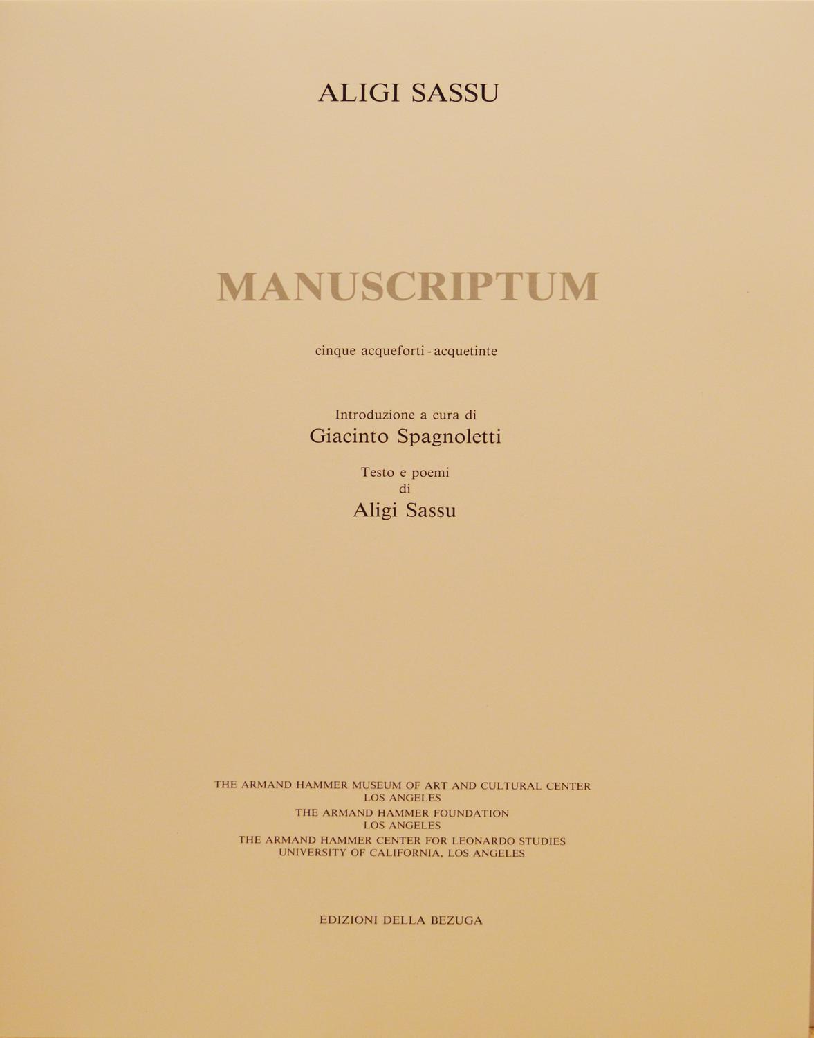 Aligi Sassu MANUSCRIPTUM cartella contenente cinque acquaforti-acquatinte,...
