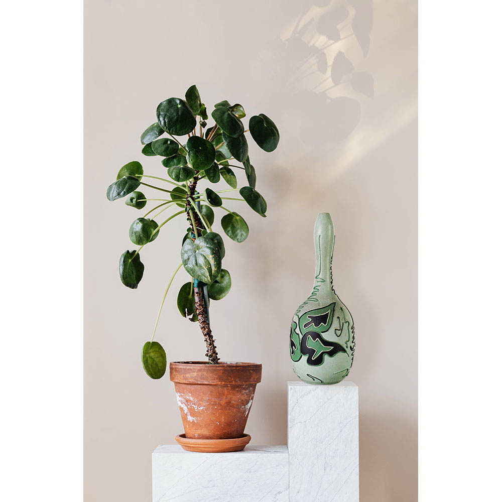 Vaso in ceramica con decori geometrici nei toni del verde, anni ‘60.