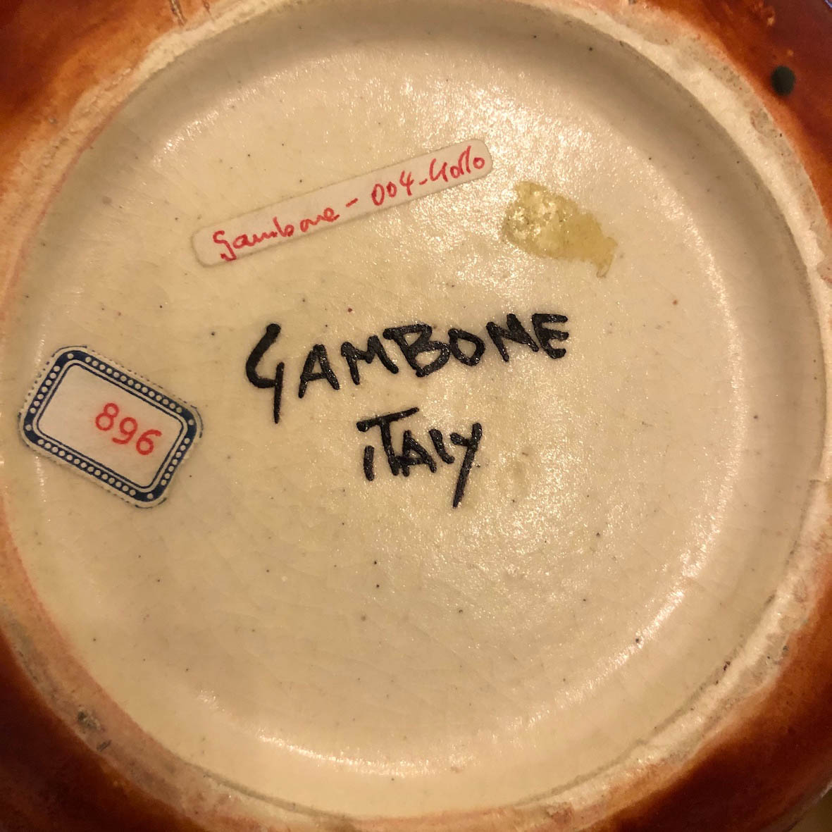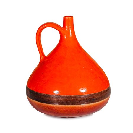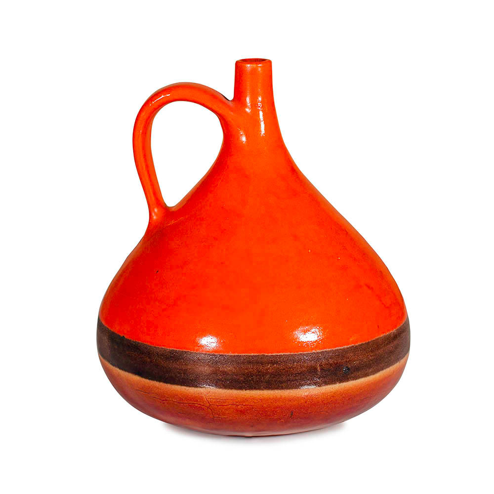 Vaso in ceramica nei toni dell’arancio con decorazione a fasce, anni ‘50.