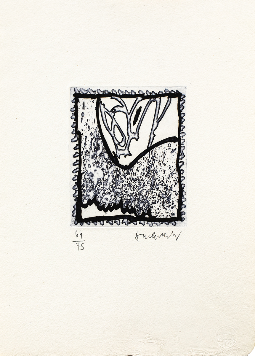 Firma e numerazione (Esemplare 64/75) a matita al fronte