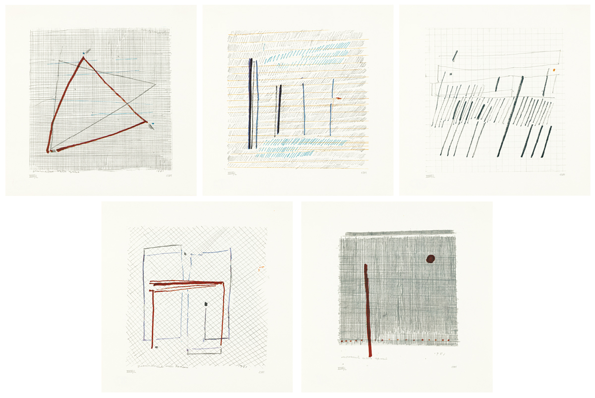 Cartella contenente 5 fotolitografie a colori, ciascuna recante datazione e numerazione (Esemplari XXXVII/L) al fronte
