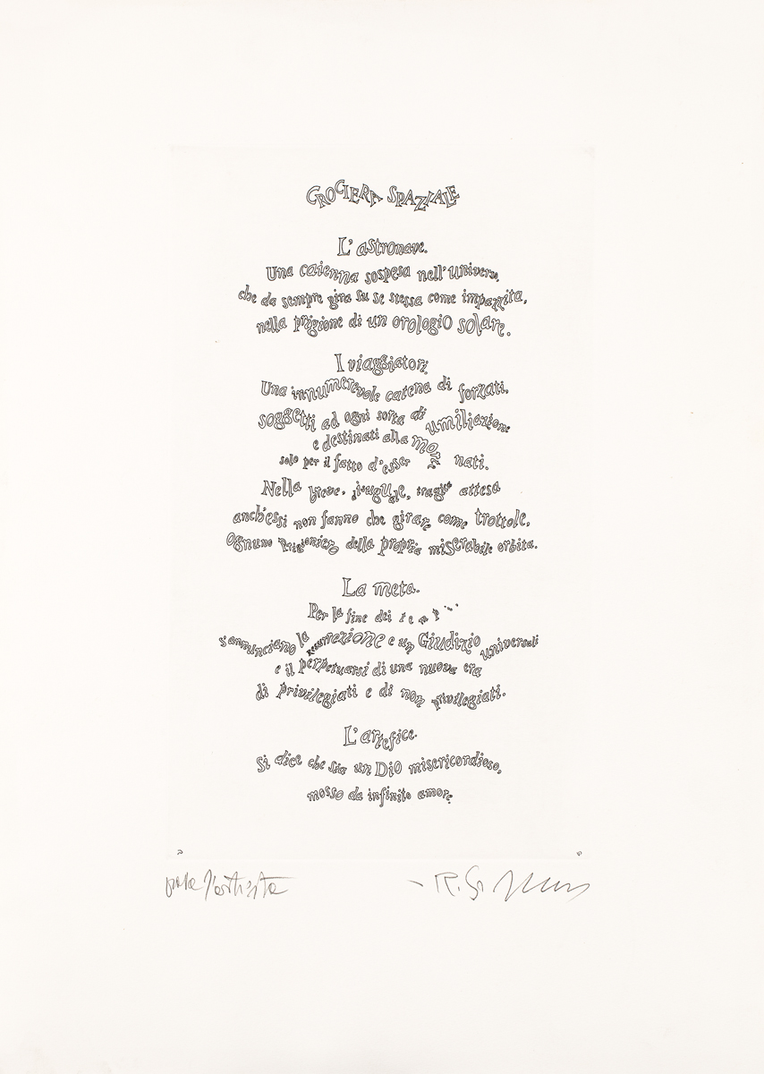 Firma, titolo, datazione, dedica ad personam e numerazione (Esemplare Prova di stampa) a matita al fronte